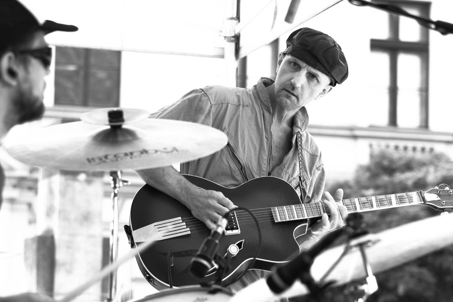 Za normálních okolností je to kytarista (The Hops Party, Morokweng), na jaře 2018 však doskočil do Daddy O, aby doplnil do sestavy rytmiku, která do té doby chyběla. Ten den se začal učit na bicí. Coby kytarista, který svým bubeníkům vždycky kecal do toho, co tam mají hrát, samozřejmě přesně ví, co by tam mělo být. A tak neustále naráží na rozpor mezi přáním a realitou. Spoluhráči je soustavně napomínán, že v téhle pasáži by to chtělo trochu ubrat. Ne. Ubírat se nebude, protože Hugo to ještě neumí.